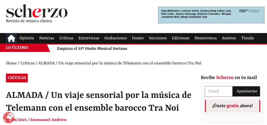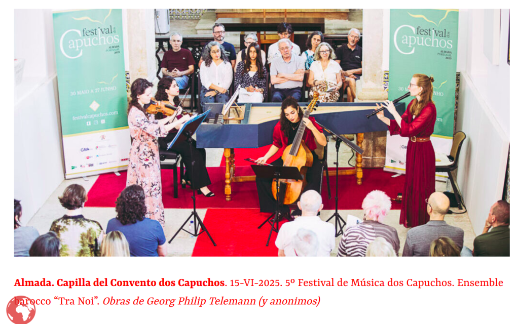 El Ensemble Barroco Tra Noi ofreció al público, que acudió en gran número, mucho más que un concierto: un verdadero viaje sensorial. Si su maestría técnica es impecable, fue sobre todo su compromiso, su alegría de tocar juntas y su inteligencia del programa lo que conquistó al público. Silvia Berchtold, Daria Spiridonova, Bianca Cucini y Rafaela Salgado iluminaron la capilla dos Capuchos con su talento y pasión. Interpretaron con brillantez toda la modernidad, curiosidad y genio de Telemann, dialogando con las tradiciones del Este de manera fascinante… ¡Bravissime!
